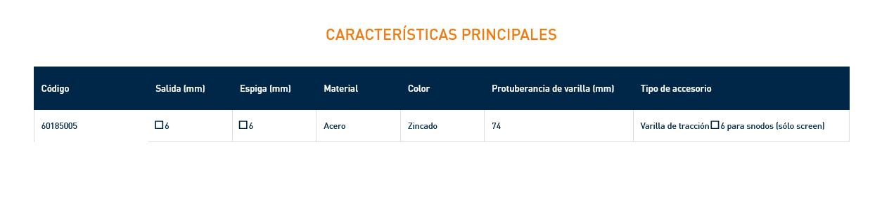 Varilla Q6x74, en acero zincado, con montaje rápido para snodos.