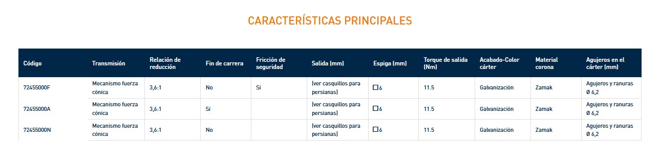 7240N Mecanismo cónico sin fin de carrera