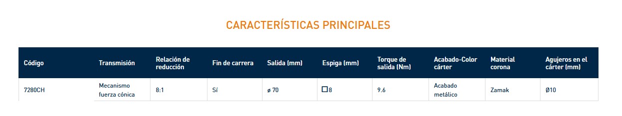 PARA PERSIANA Mecanismo cónico. Reducción 8:1 Cárter en Zamak. Engranajes cónicos en Zamak. Freno...