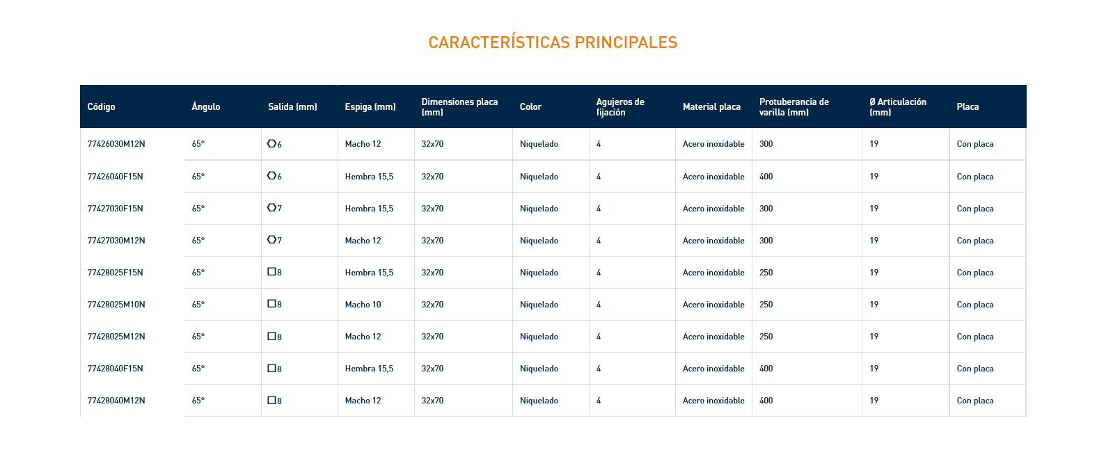 PARA VENECIANA, PERSIANA Y CORTINA ENROLLABLE Snodo 65° Placa Inox Placa acero Inox. Articulación...
