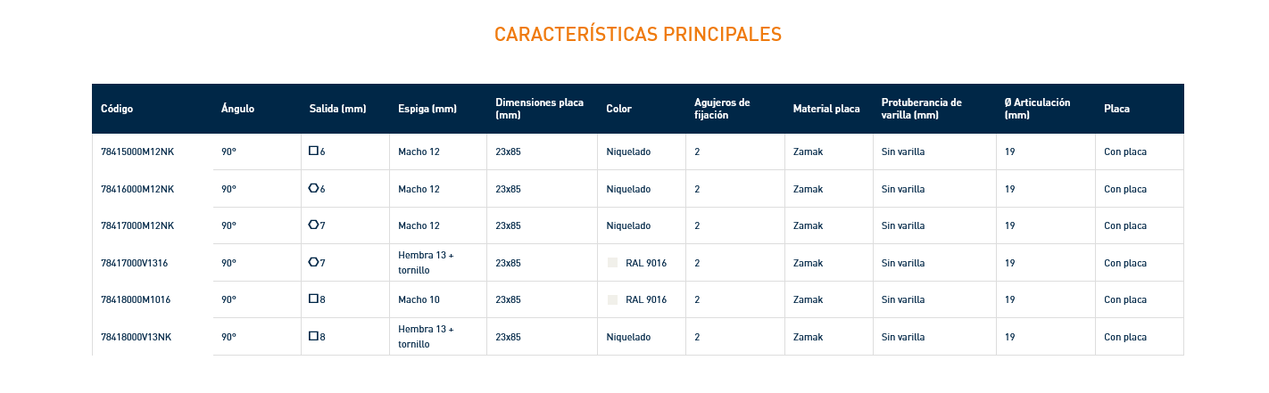 - Articulación Zamak lacado o niquelado.