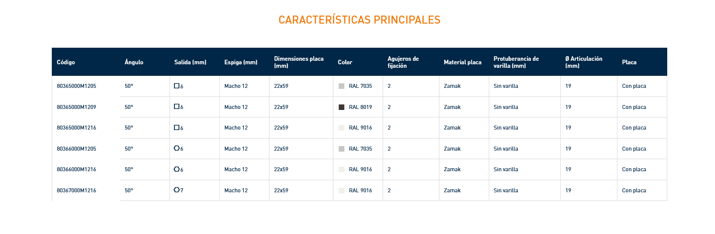 • Articulación Zamak lacado o niquelado.