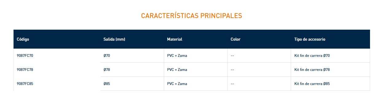 Grupo fin de carrera con eje cuadro 12, cremallera, tornillo con tuerca Ø 70, Ø 78 e Ø 85 mm y clip de contención.