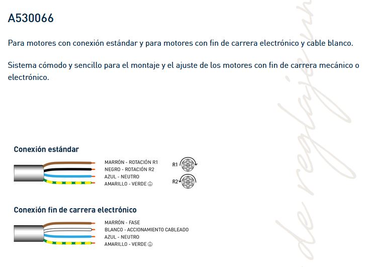 Para motores con conexión estándar y para motores con fin de carrera electrónico y cable blanco.