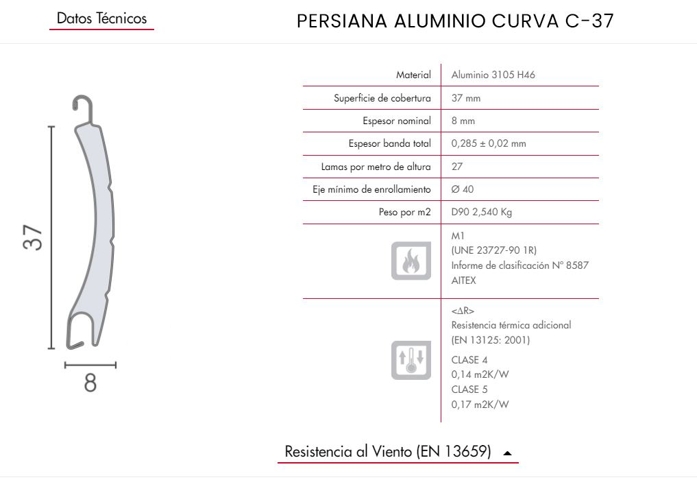 PERSIANA DE ALUMINIO CURVA C-37-HQ