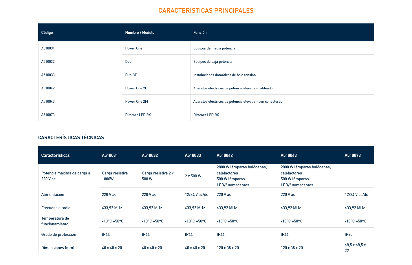 Los receptores domóticos Power One 2C y 2M permiten el accionamiento de aparatos eléctricos de elevada potencia, como lámparas halógenas y calefactores infrarrojos. Adaptados para el accionamiento de cargas especiales como fuentes de alimentación para LED, tubos fluorescentes y tubos compactos.